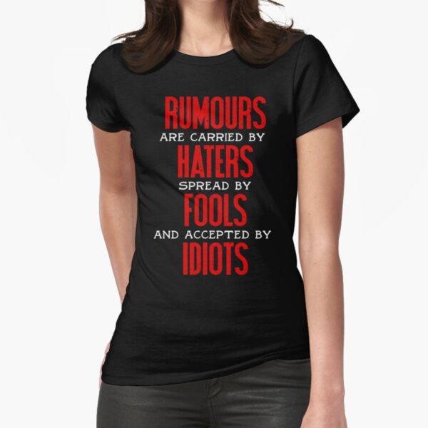 Οι φήμες που μεταφέρονται από haters, μεταδίδεται από ανόητοι και έγινε αποδεκτή από ηλίθιους. Rumors are carried by haters, spread by fools, and accepted by idiots. Rumors are carried by haters. Secrets of rumors are seen as crimes committed by third parties.